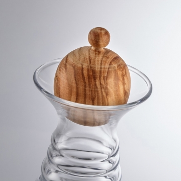 Karafa Alladin se zlatým symbolem Květu života a vrškem z olivového dřeva