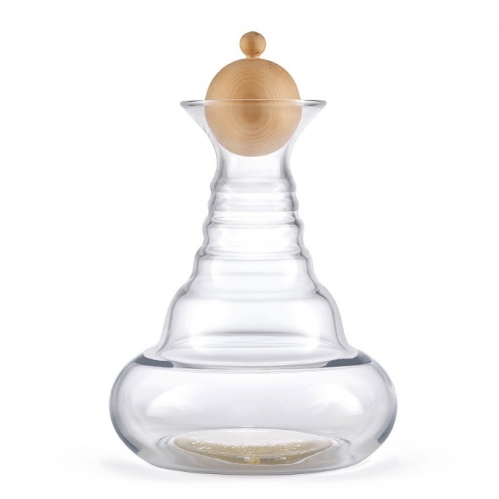 Karafa Alladin se zlatým symbolem Květu života a vrškem vyrobeným ze dřeva švýcarské borovice