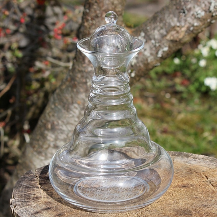Karafa má kaskádovitý design se 6 částmi, přičemž objem každé části odpovídá prvním 6 číslům univerzální Fibonacciho posloupnosti čísel. Navazuje tak na univerzální geometrii přítomnou všude v přírodě. Revitalizovaná voda vykazuje 6 - strannou krystalickou strukturu, která signalizuje její zvýšenou míru energie a životní síly.