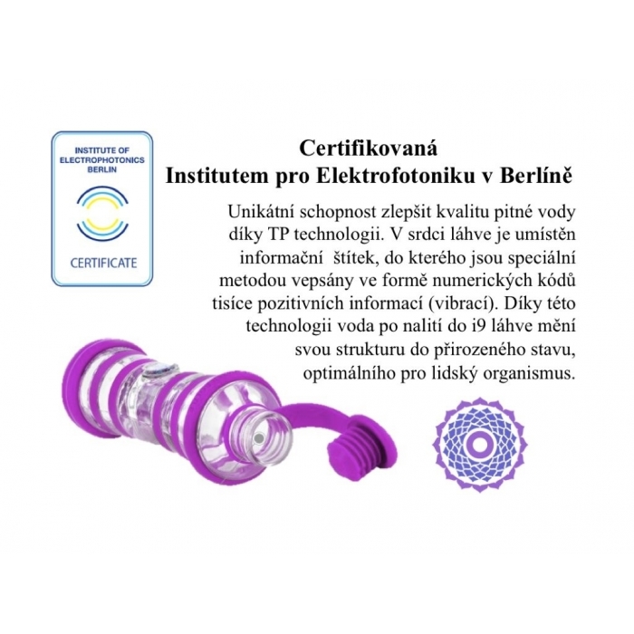 i9 láhev je skleněná láhev s unikátní schopností harmonizace a revitalizace vody. Láhev je obohacena o účinky technologie Poznik (TP), často nazývané technologií 21.století. Jejím cílem je jednoduchá a rychlá obnova přirozené harmonie a vitality pitné vody. V srdci každé i9 láhve se nachází jedinečný štítek, který umožňuje vložit do vody pozitivní informace a tím nastolit rovnováhu a podpořit životní procesy. Díky TP technologii a chromoterapii pomáhá voda z i9 láhve zvýšit vitalitu a přispívá k rovnováze energetických center.